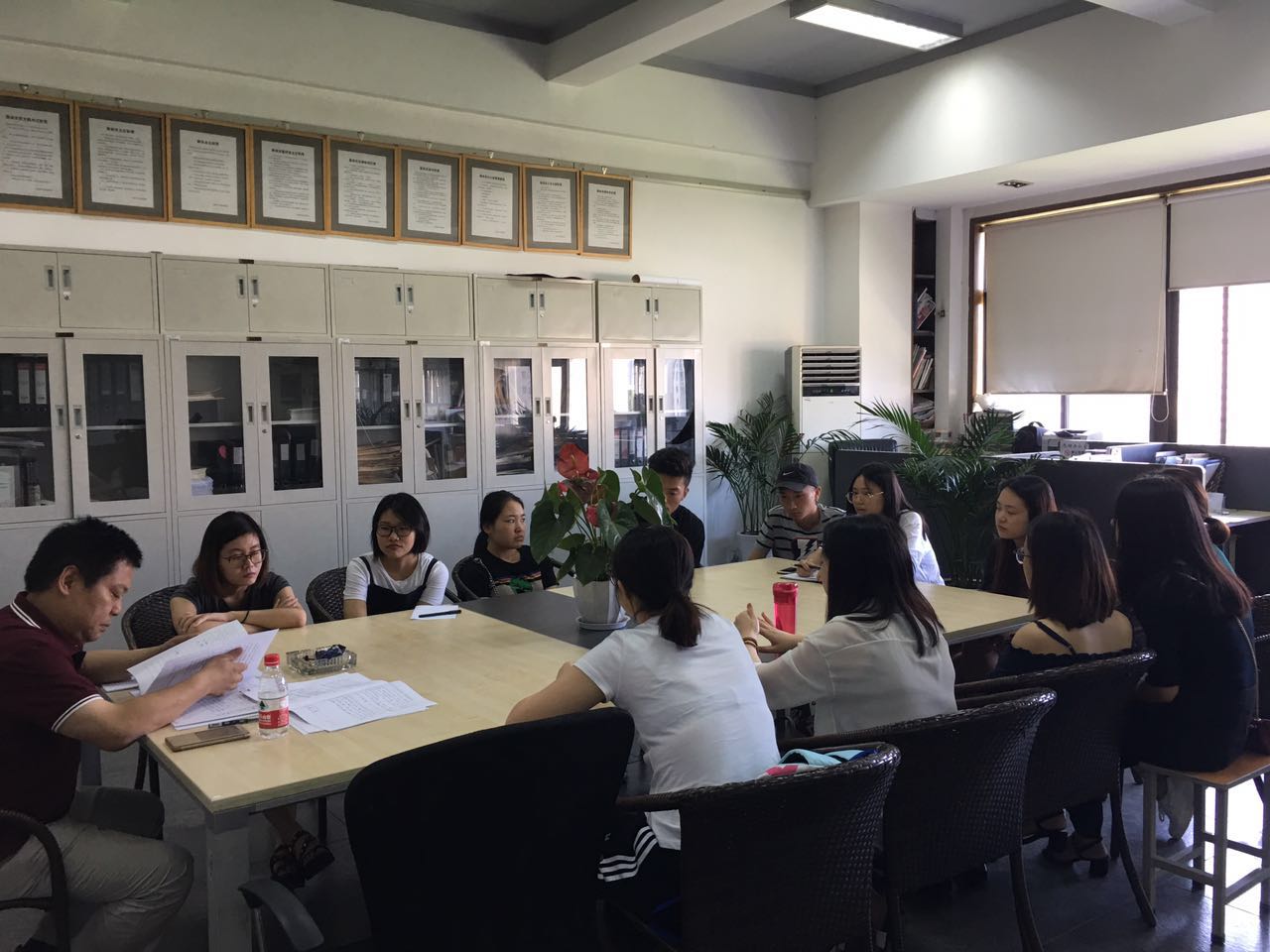 6月22日上午,西安美术学院党委委员、副院长李四军对我系第一学生支部14名发展对象进行了集中谈话。谈话会上,李四军副院长让每位同学就对党的认识谈谈自己的看法,并逐一进行补充。随后李四军副院长以保持党员先进性为主题对发展对象进行谈话教育。