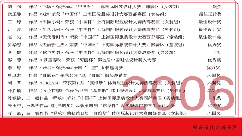 2006年服装设计专业学生获奖情况