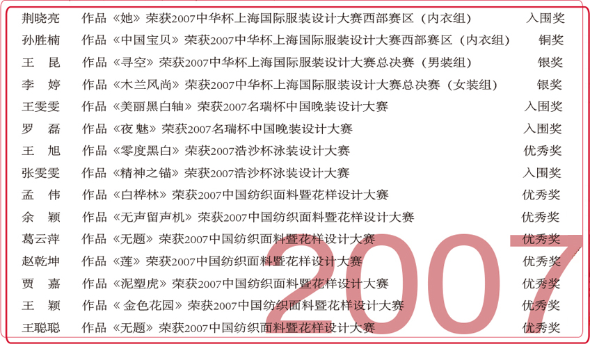 2007年服装设计专业学生获奖情况