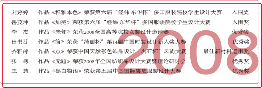 2008年服装设计专业学生获奖情况