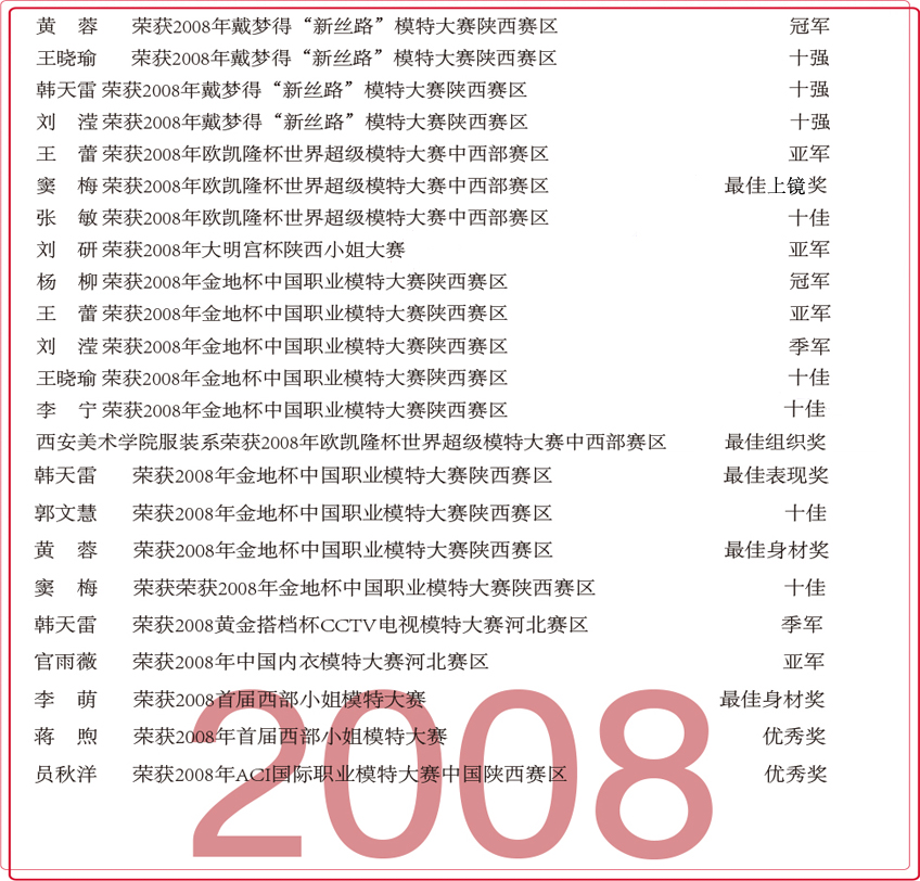 2008年服装设计与表演专业学生获奖情况