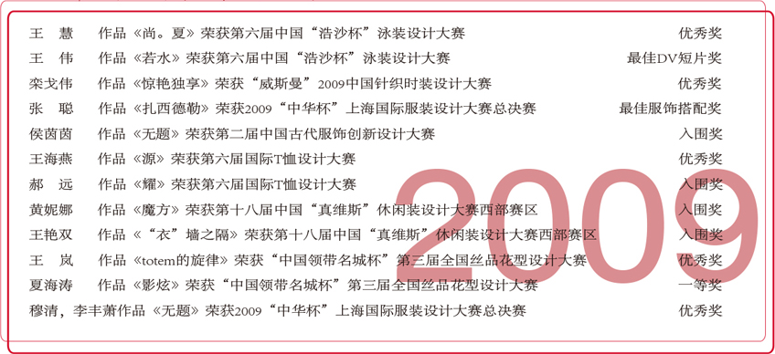 2009年服装设计专业学生获奖情况